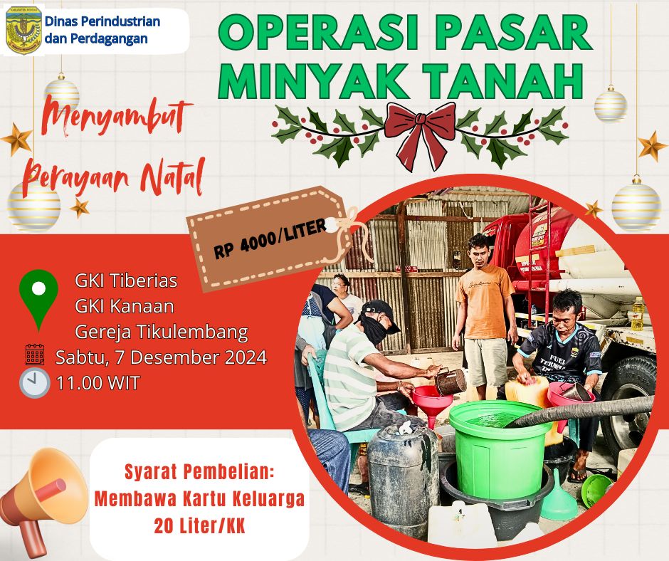 Dalam rangka menyamput perayaan Natal, Dinas Perindustrian & Perdagangan mengadakan kegiatan Pasar Minyak Tanah yang bertempat di 3 lokasi yaitu...