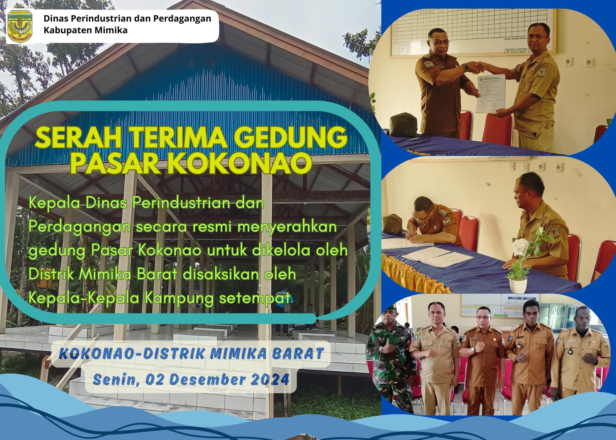Kepala Dinas Perindustrian & Perdagangan secara resmi menyerahkan gedung Pasar Kokonao untuk dikelolah oleh Distrik Mimika Barat disaksikan oleh kepala-kepala...